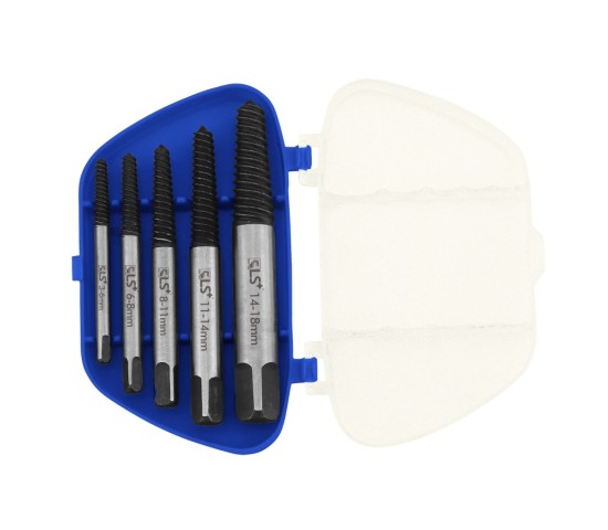 Điểm nhấn của Bộ mở ốc gãy 5pcs LS+ nằm ở thiết kế ren ngược thông minh với các kích thước : 3-6mm; 6-8mm; 8-11mm; 11-14mm; 14-18mm. Với cơ chế ăn vào vật liệu khi xoay ngược chiều kim đồng hồ, bộ dụng cụ này có khả năng bám chặt vào phần ốc bị gãy, tạo lực kéo mạnh mẽ để rút ốc ra một cách dễ dàng. Cấu trúc ren xoắn được tối ưu hóa để phù hợp với nhiều kích cỡ ốc khác nhau, mang lại sự linh hoạt và tiện lợi tối đa.