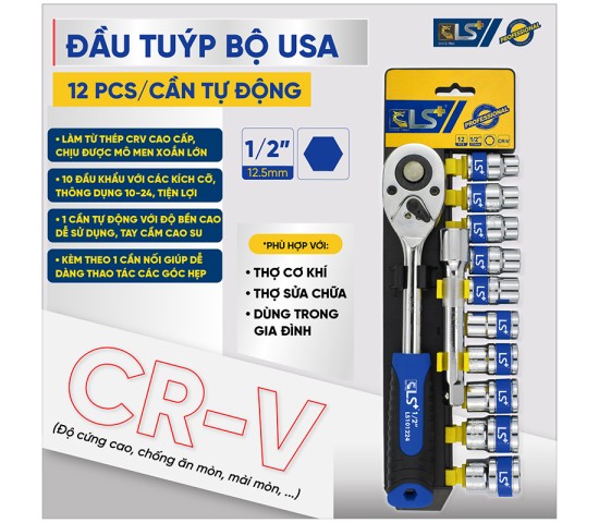 Đầu tuýp bộ USA 12pcs tự động LS+ – Đầy Đủ, Bền Chắc, Linh Hoạt
