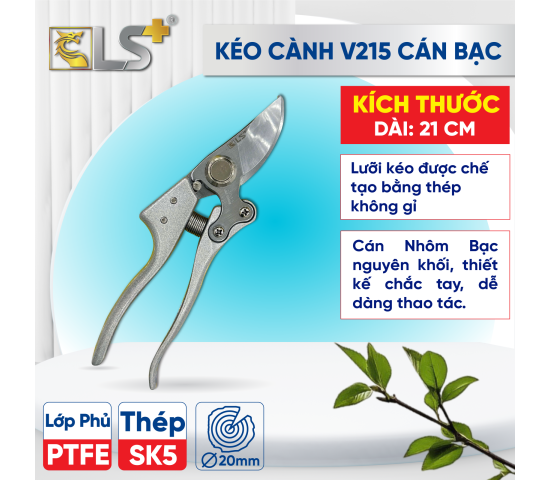 Kéo cành V215 cán bạc LS+ V215 cán bạc – Cắt Cành Sắc Bén, Cầm Chắc Tay