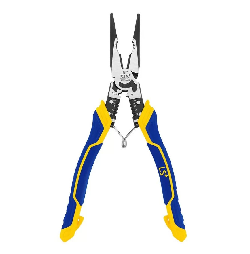 Kìm đa năng 8 inch LS+ được chế tạo từ những vật liệu cao cấp, đảm bảo độ cứng cáp và khả năng chịu lực tuyệt vời. Thiết kế của sản phẩm tích hợp nhiều chức năng trong một, từ cắt, tuốt dây điện, kẹp, đến khả năng mở ốc vít, giúp người sử dụng tiết kiệm không gian, thời gian và chi phí khi không cần mang theo quá nhiều dụng cụ cồng kềnh. Tay cầm được bọc lớp nhựa chống trượt, mang lại cảm giác cầm nắm chắc chắn, êm ái và an toàn ngay cả trong điều kiện làm việc khắc nghiệt.