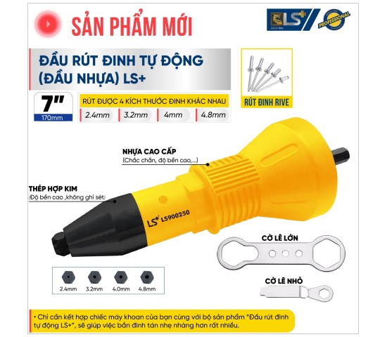 Với khả năng ứng dụng linh hoạt, **Kìm Rive - ĐẦU RÚT ĐINH TỰ ĐỘNG** là công cụ không thể thiếu trong các ngành nghề đòi hỏi sự kết nối vật liệu chắc chắn và thẩm mỹ.