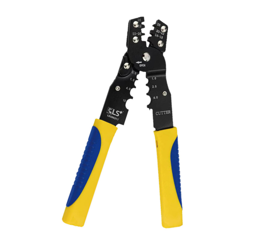 Crimping pliers are indispensable tools in the electrical industry, manufactured by LS+ Pliers. They are used to firmly press terminal connectors onto electrical wires, ensuring good and safe electrical conductivity. There are various types of crimping pliers, distinguished by terminal type (bare, insulated) and wire gauge.