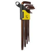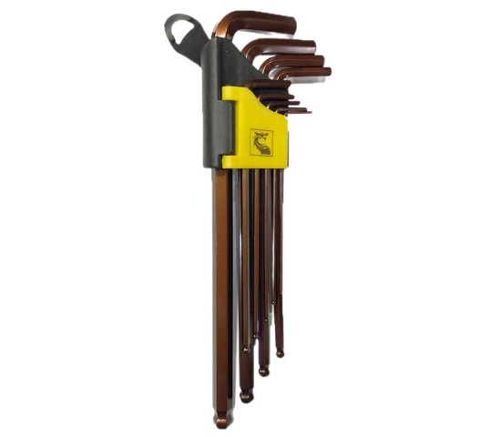 Màu nâu đặc trưng của bộ lục giác không chỉ mang lại vẻ ngoài sang trọng, chuyên nghiệp mà còn gợi lên sự mạnh mẽ, bền bỉ. Chất liệu hợp kim thép S2 cao cấp, vốn nổi tiếng với khả năng chịu mài mòn và độ cứng vượt trội, là yếu tố cốt lõi tạo nên sức mạnh của từng cây lục giác trong bộ. Sự kết hợp giữa chất liệu S2 và quy trình xử lý nhiệt hiện đại giúp mỗi chi tiết đạt được độ bền tối đa, chống gỉ sét hiệu quả và duy trì được hình dáng chính xác ngay cả sau thời gian dài sử dụng trong môi trường khắc nghiệt. Thiết kế tay cầm cũng được tối ưu hóa để mang lại cảm giác thoải mái, chống trượt, giảm thiểu mỏi tay khi thao tác liên tục.