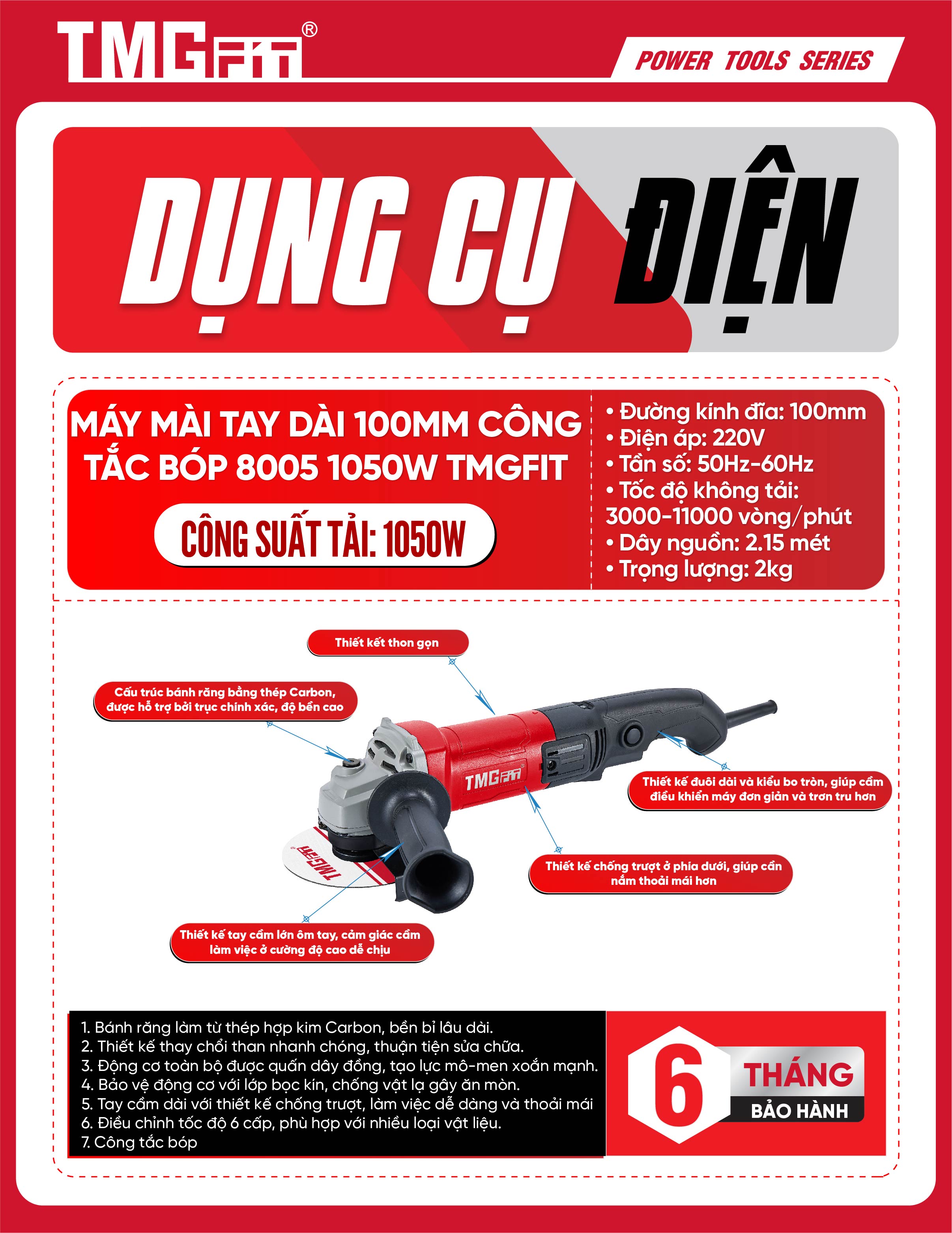 Sức Mạnh Động Cơ Máy mài tay dài 100mm công tắc bóp 1050W 8005: Hiệu Suất Bứt Phá Mọi Giới Hạn
