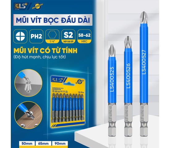 Mũi vít bọc dài chống trượt LS+ - Thép S2 Cứng Cáp, Mũi Vít Từ Tính