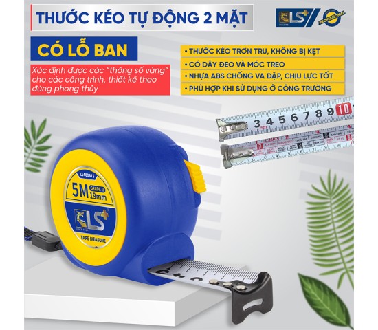 Được thiết kế với sự tỉ mỉ và chế tạo từ vật liệu cao cấp, Thước Kéo Tự Động 2 Mặt LS+ hứa hẹn mang đến trải nghiệm đo lường vượt trội, giúp bạn hoàn thành công việc một cách nhanh chóng, chính xác và hiệu quả.